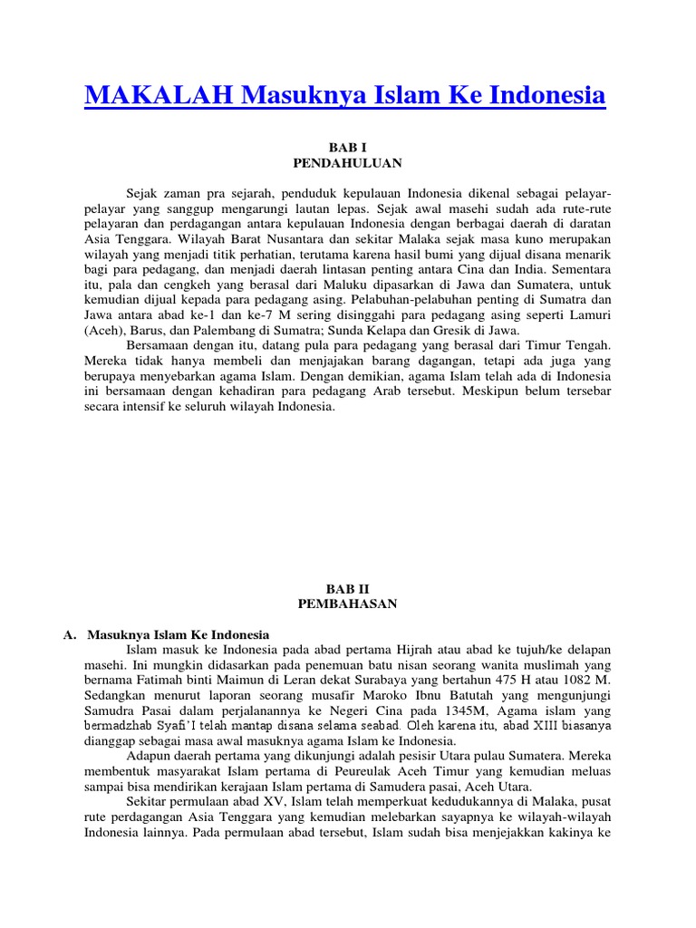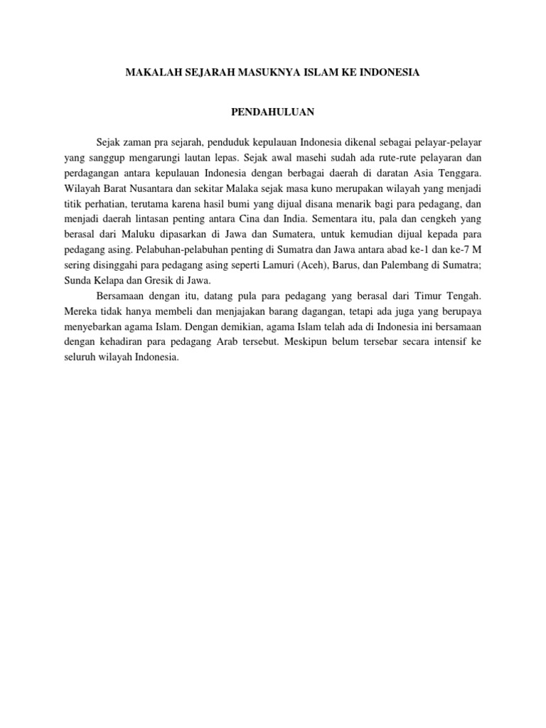 Makalah sejarah masuknya islam ke nusantara pdf. Download Full PDF Package. Ada banyak teori dan pendapat yang terdapat pada kisah masuknya ajaran Islam ke Indonesia. TEORI MASUKNYA ISLAM KE NUSANTARA Sebuah Diskusi Ulang MAKALAH disampaikan dalam diskusi Sejarah Islam Indonesia diselenggarakan Mahasiswa Jurusan Sejarah Fakultas Sastra Universitas Padjadjaran Jatinangor 13 Maret 2007 oleh.