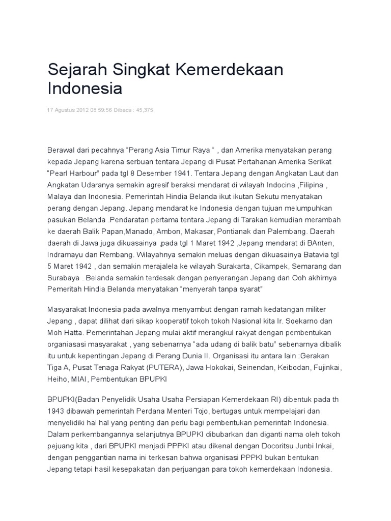 Sejarah Singkat Kemerdekaan Indonesia Pdf