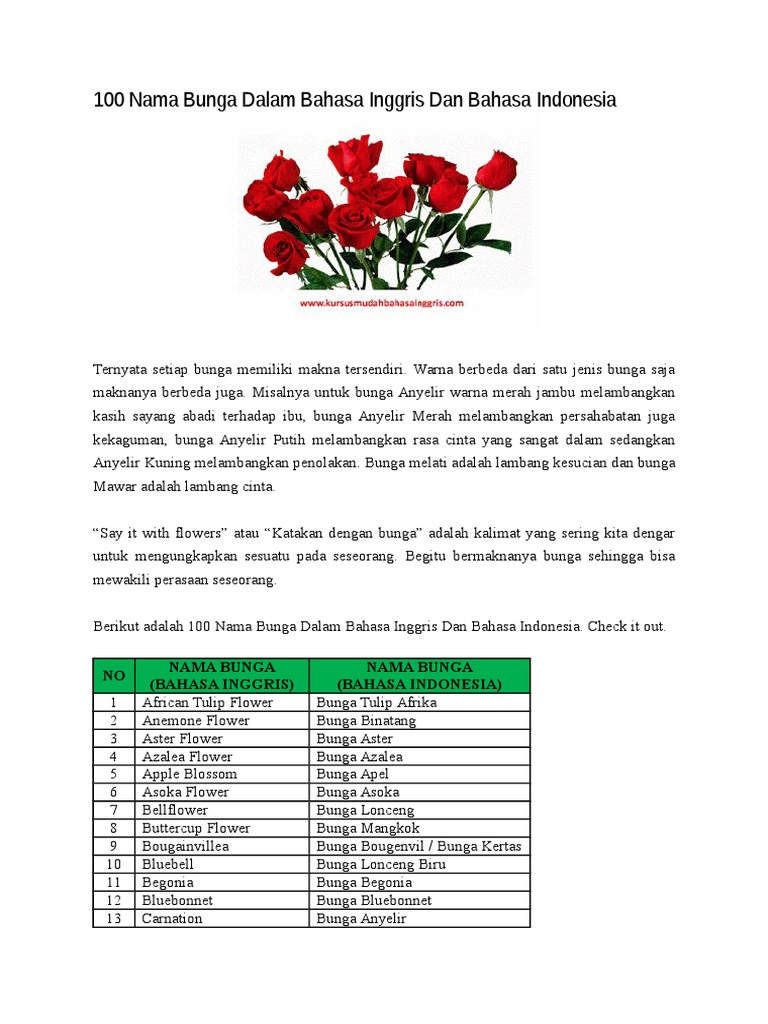 Nama Bunga Dalam Bahasa Inggris Dan Artinya